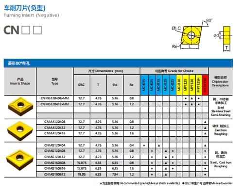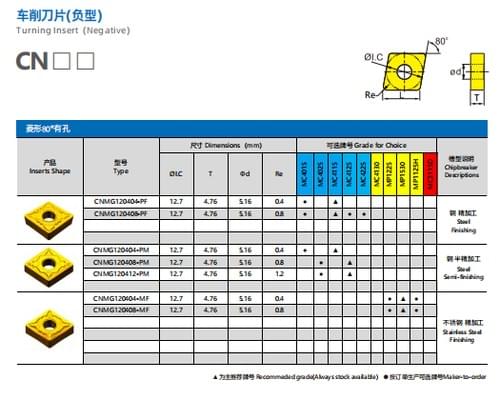 CNMG120408-PMF 外圆车刀片适用于钢件的半精加工及中等切深、大进给粗加工