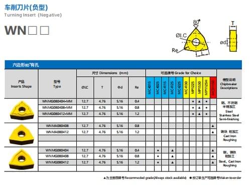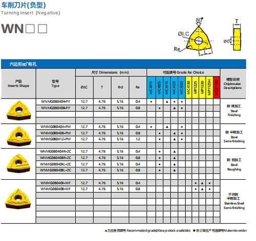 WNMG080408-PMF 外圆车刀片适用于钢件的半精加工及中等切深、大进给粗加工